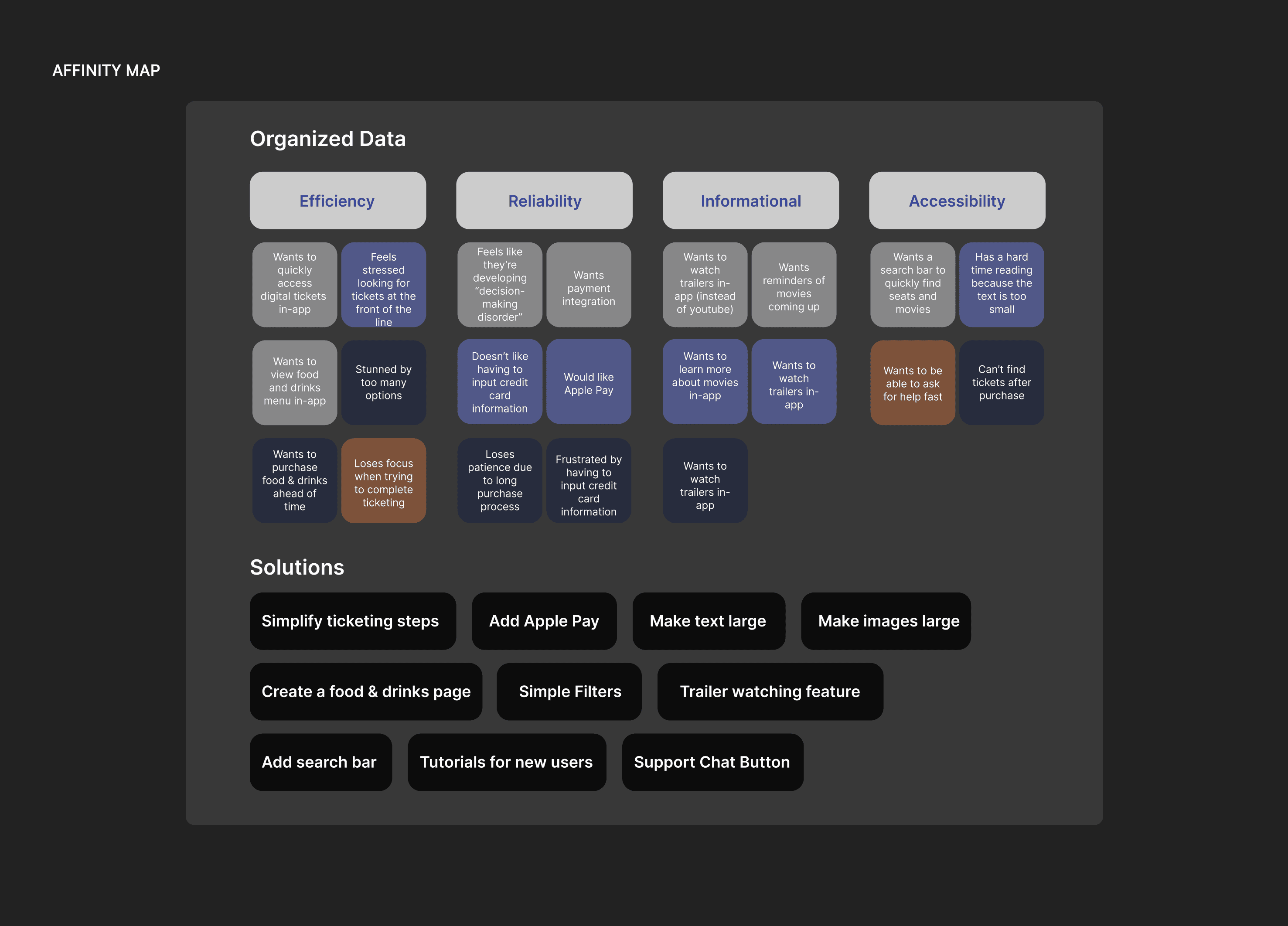 Locating Items: A couple testers struggled to locate ‘Popcorn’ in the food & drinks menu in the pre-order user flow.
