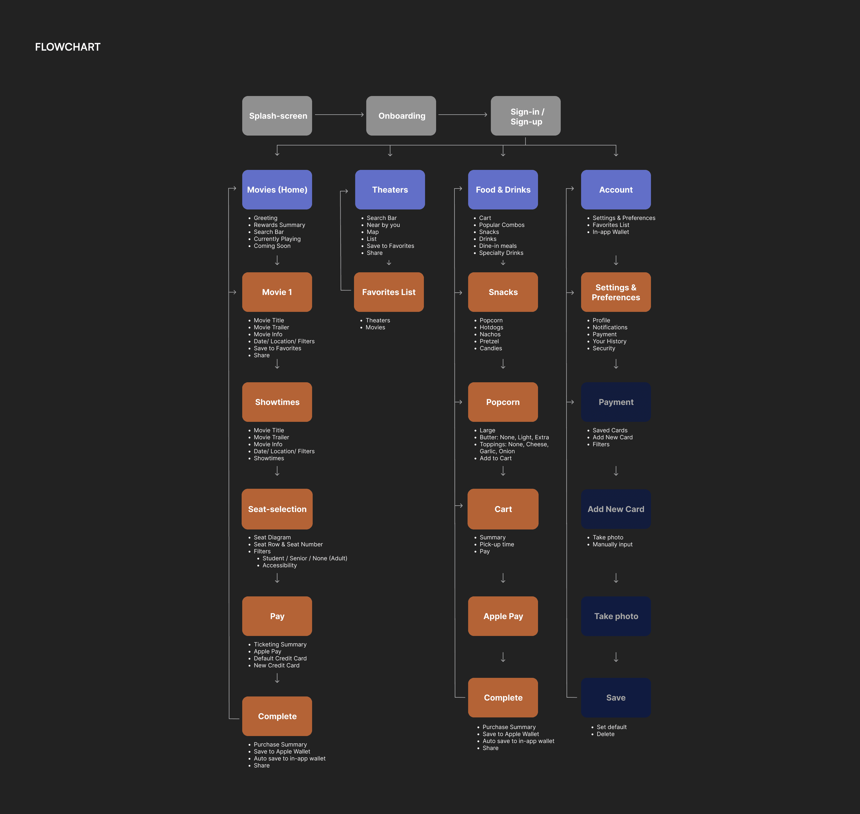With the data gathered in the research phase, I moved the case study forward by creating a flow chart.