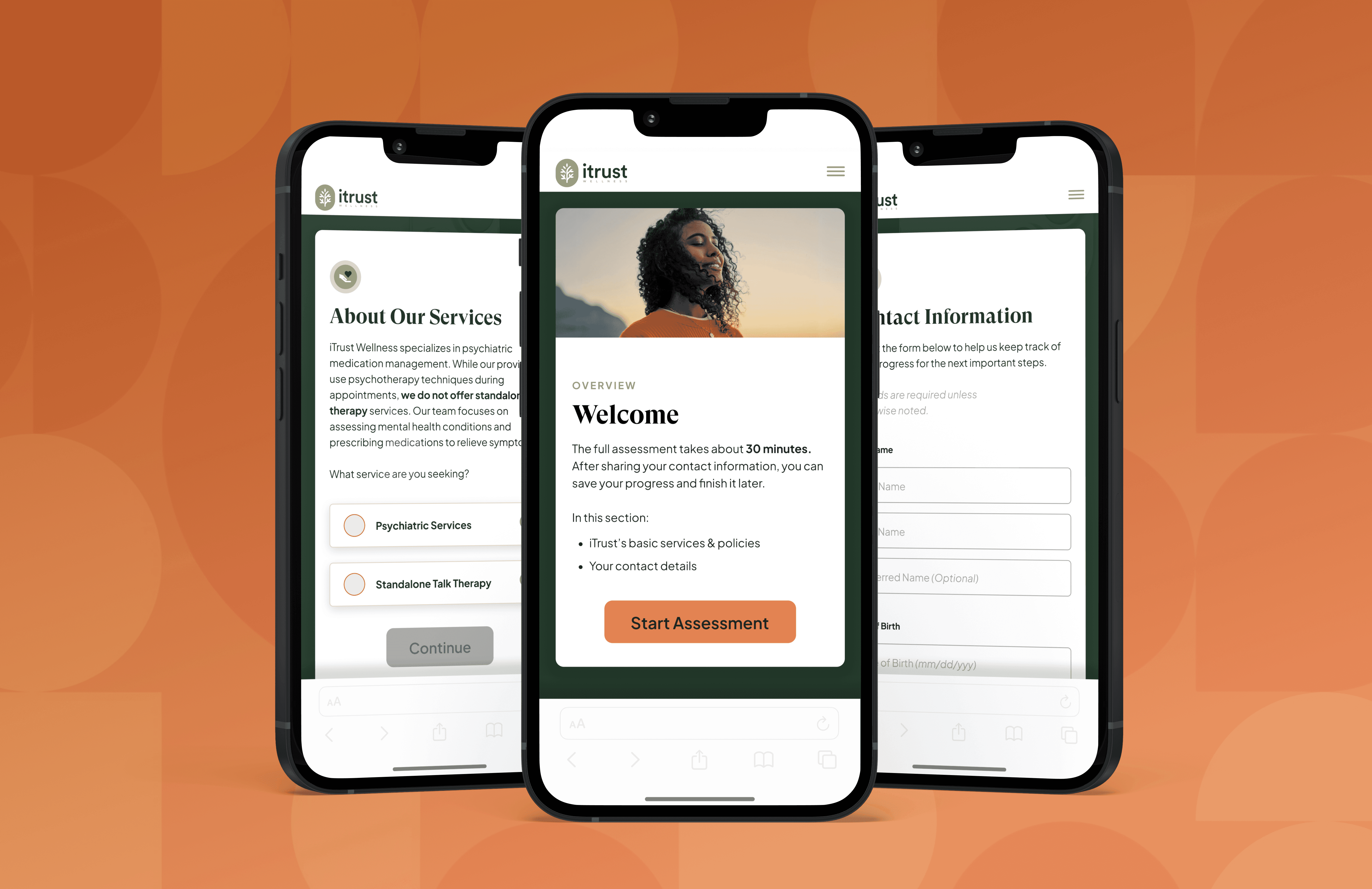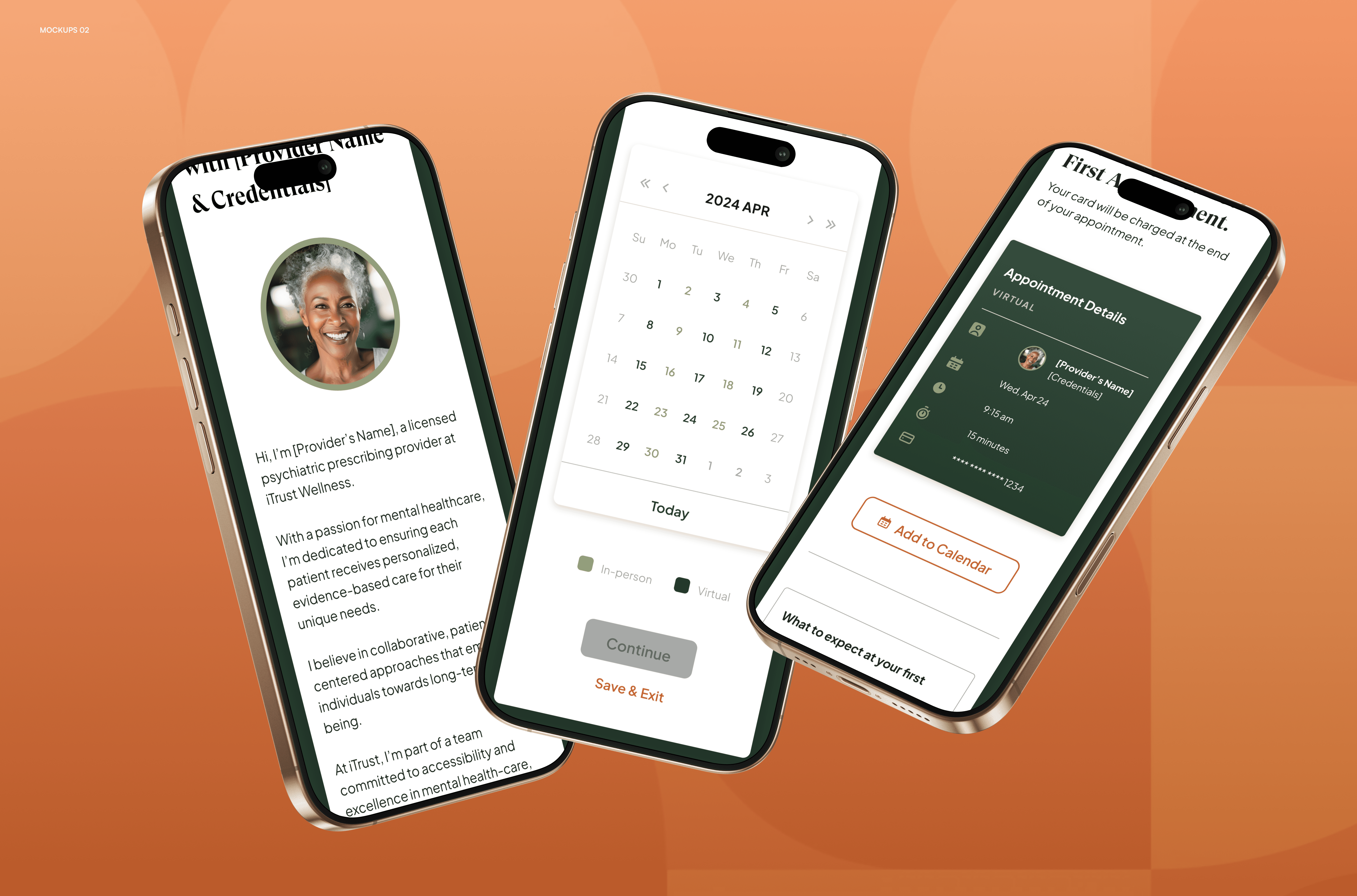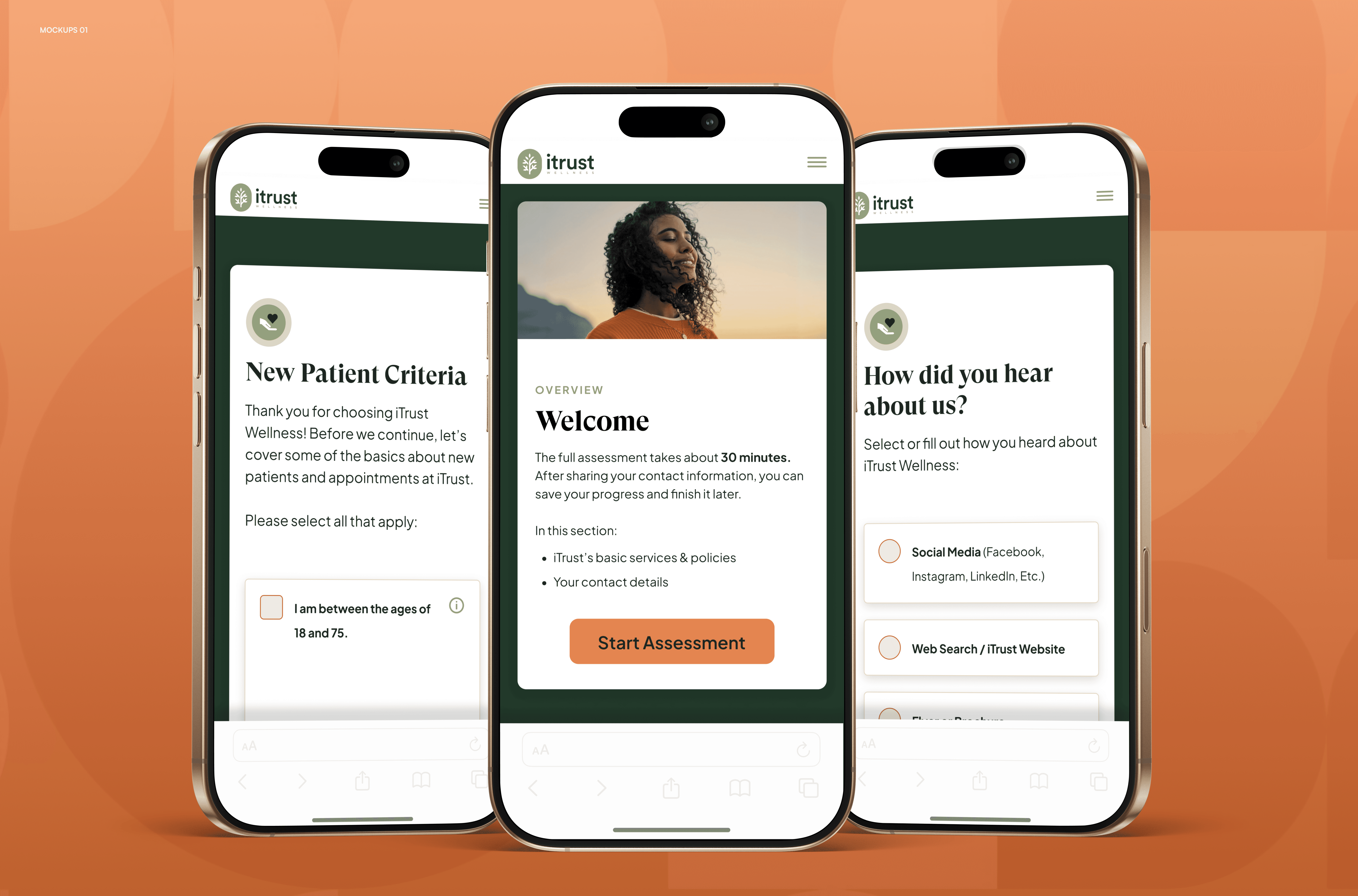 After collaborating with iTrust Wellness for over a year and a half, I have found immense satisfaction in our shared commitment to user-centered design. Together, we’ve focused on creating a thoughtful, detail-oriented experience that prioritizes the needs and emotions of our patients.
