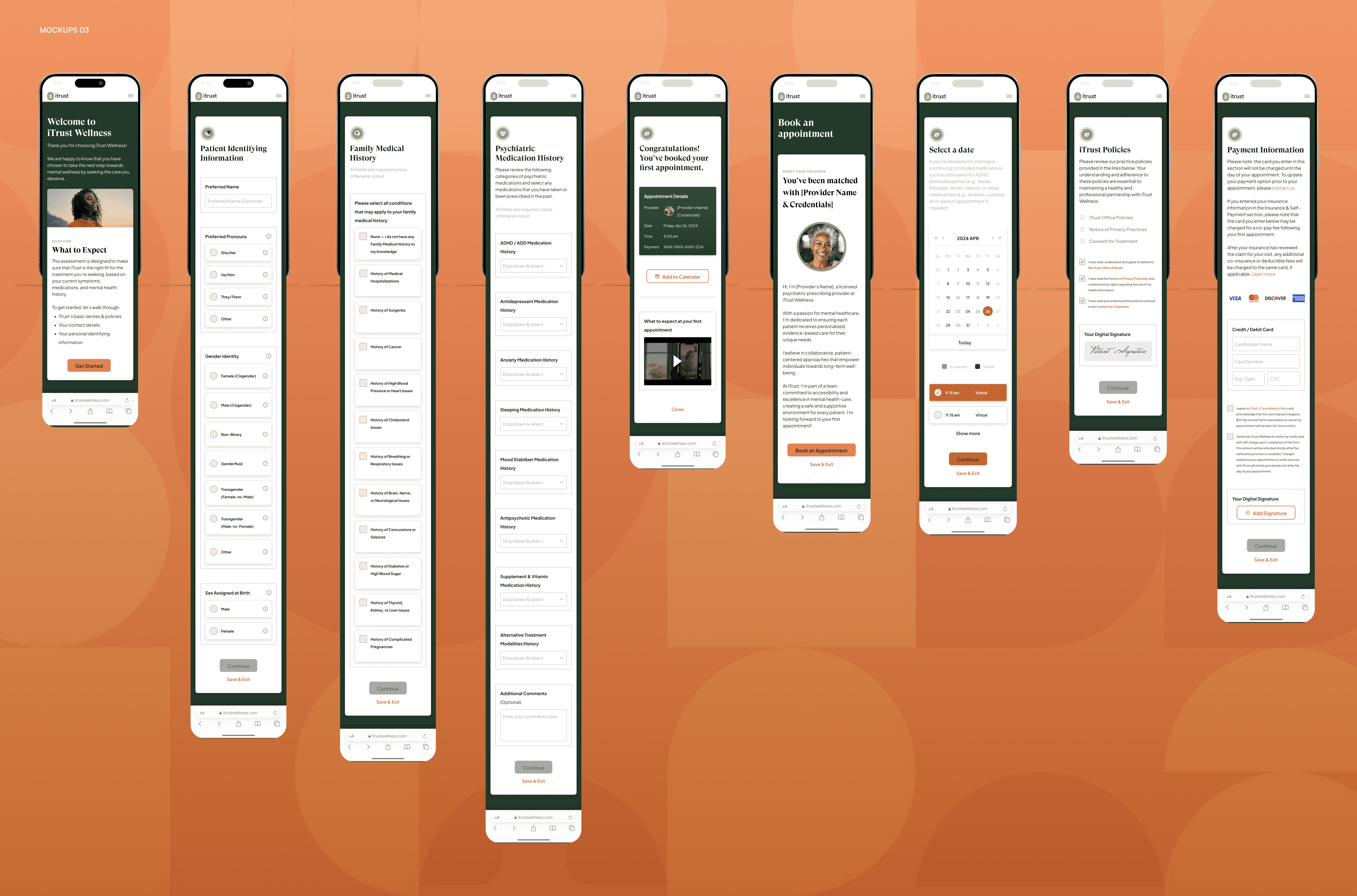 I created wireframes that simplified iTrust Wellness Group’s multi-step onboarding process, making each stage—from assessments to scheduling—clear and supportive. These wireframes helped align the team and set a strong foundation for final design.
